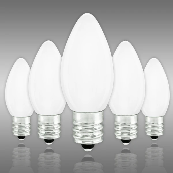 These bulbs provide a pure white hue that is neither warm nor cool. Their neutral color makes them great for pairing with any other color of our LED C7s. Install them into our stringers for a complete lighting solution that’s ideal for home exteriors, trees, wreaths, and balconies.