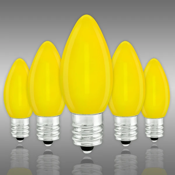 Whether you’re lining your roof for the holidays, illuminating electric candles, or decorating trees, these yellow C7 bulbs provide a bright yellow hue for a nostalgic mid-century look.